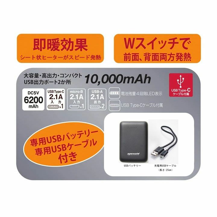 他の画像を見る 即断効果。Wスイッチで前面、背面両方発熱 ATACKBASE アタックベース 60000 Wスイッチヒートベスト HYPER バッテリーセット付き メンズ 男性 秋冬 ナイロン ポリエステル ブラック 電熱ベスト 防寒着 防寒服 ヒーター内蔵 ポケット 暖かい 釣り ゴルフ レジャー 通勤 ソロキャンプ アウトドア 寒さ対策 作業着 【5L】 本体価格 ¥ 14,850 税込 詳細を見る お気に入りに登録する