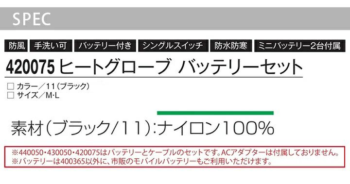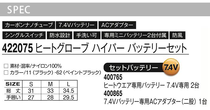 他の画像を見る シート状ヒーターがスピード発熱。即暖効果。 ヒートグローブ ハイパー バッテリーセット 防寒手袋 アタックベース 422075 メンズ 秋冬 反射 防風 防水 防寒着 防寒服 作業着 作業服 ATACK BASE 本体価格 ¥ 10,900 税込 在庫切れ カートに入れる お気に入りに登録する