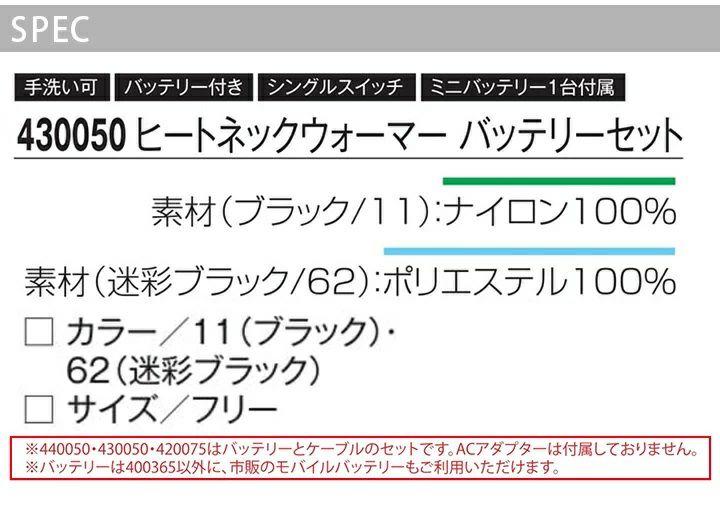 他の画像を見る スイッチ付けて20秒でぽっかぽか。重ね着でしのげない極寒気温下にも即暖効果。 ヒートネックウォーマー バッテリーセット アタックベース 430050 メンズ 秋冬 アウトドア スポーツ 防寒着 防寒服 作業着 作業服 ATACK BASE 本体価格 ¥ 4,369 税込 在庫切れ カートに入れる お気に入りに登録する