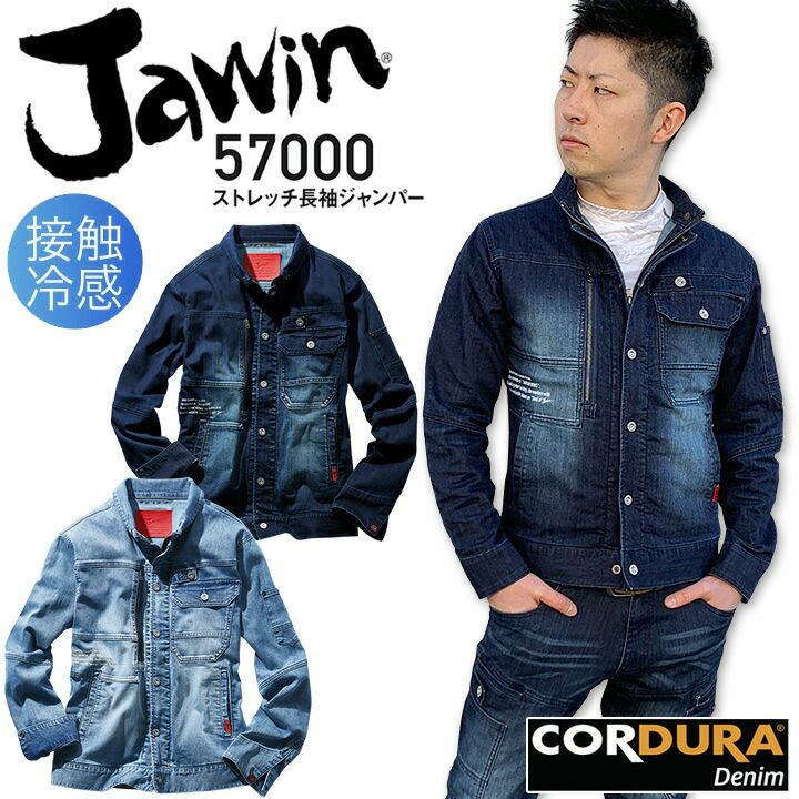ジャウィン ストレッチ長袖ジャンパー 57000【春夏】男女兼用 メンズ レディース デニム 接触冷感 ジャケット ブルゾン Jawin 自重堂 作業服 作業着 かっこいい おしゃれ【SS-EL】