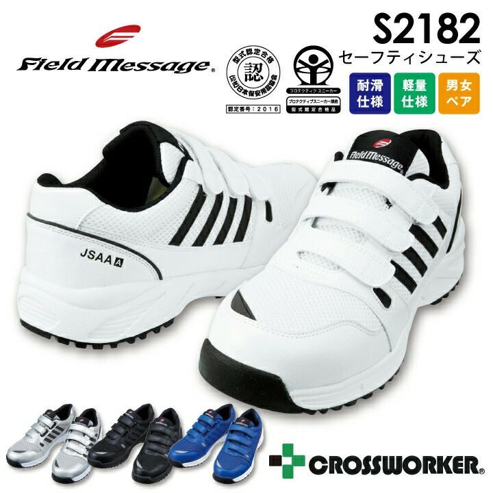 安全靴 セーフティシューズ S2182 JSAA A種認定品 プロスニーカー 衝撃吸収 反射材 耐滑 軽量 男女ペア メンズ レディース フィールドメッセージ 自重堂 作業靴 マジックテープ