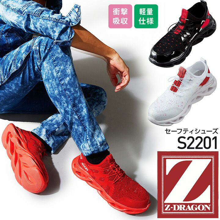 Z-DRAGON 安全靴 S2201 ローカット 衝撃吸収 スチール先芯 ゴム紐 セーフティーシューズ かっこいい 作業靴 自重堂