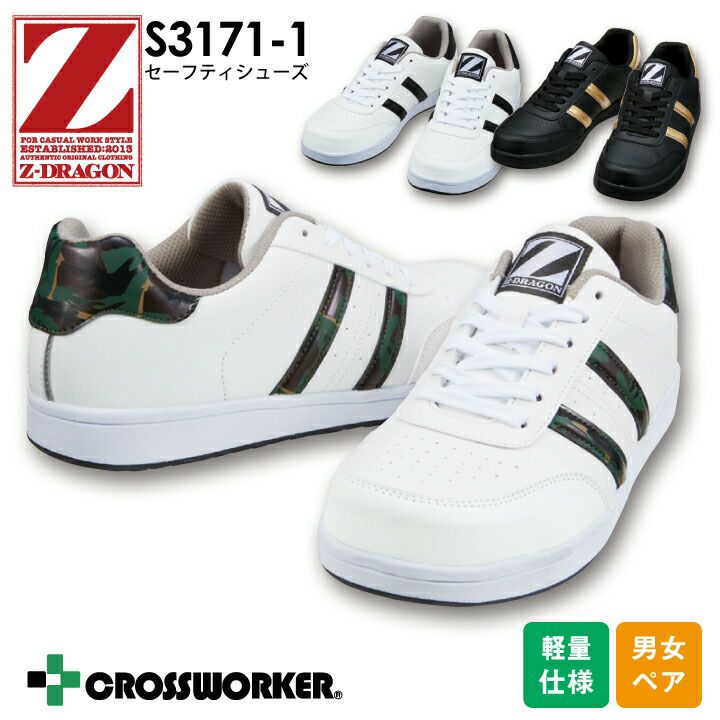 Z-DRAGON 安全靴 ローカット S3171-1 紐タイプ スニーカー セーフティシューズ 自重堂 作業靴 軽量 男女ペア かっこいい カモフラ 迷彩 樹脂先芯