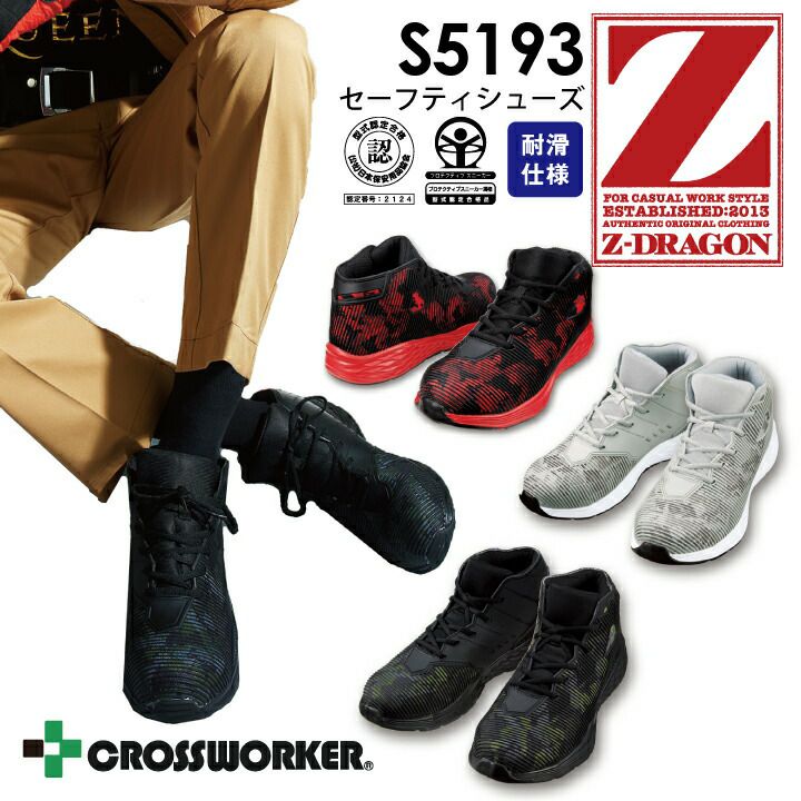 【送料無料】Z-DRAGON 安全靴 セーフティシューズ S5193 ミドルカット JSAA A種認定品 プロスニーカー 衝撃吸収 耐滑 カモフラ 自重堂 作業靴 かっこいい おしゃれ スニーカー