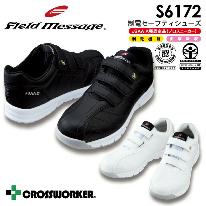 安全靴 制電セーフティシューズ S6172 JSAA A種認定品 プロスニーカー 制電機能 衝撃吸収 耐滑 男女ペア メンズ レディース フィールドメッセージ 自重堂 作業靴