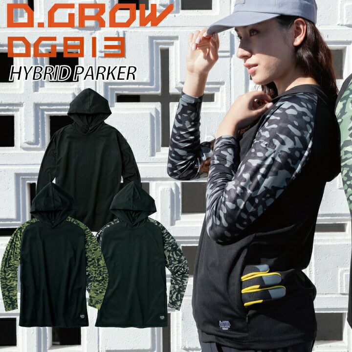 2024年新商品 D.GROW ハイブリッドパーカー DG813 クロダルマ 春夏 高通気 涼しい 吸汗速乾 消臭テープ ストレッチ 伸縮 鹿の子 パーカー ハイブリッド カモフラ 迷彩 スポーツ アウトドア ウォーキング 作業着 作業服