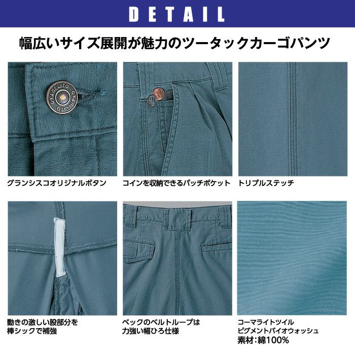 他の画像を見る グランシスコ 選ばれし熟練者たちのウェア タカヤ商事 ツータックカーゴパンツ GC-2011 GC2011 グランシスコ 秋冬 ズボン 作業着 作業服 本体価格 ¥ 4,180 税込 カートに入れる お気に入りに登録する