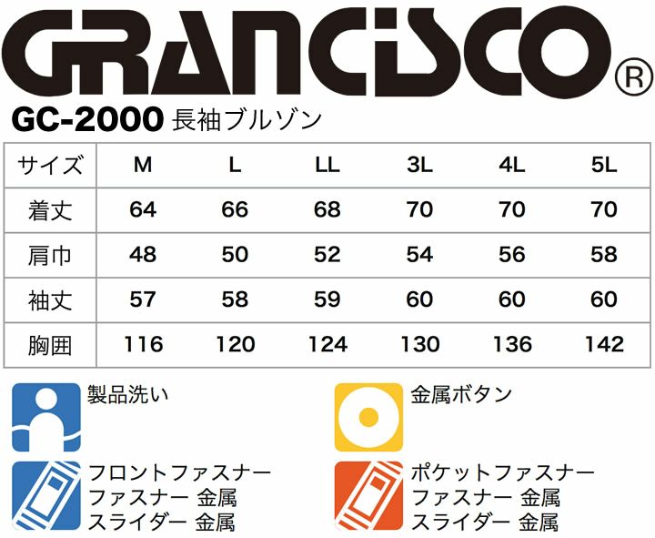他の画像を見る グランシスコ 選ばれし熟練者たちのウェア タカヤ商事 長袖ブルゾン GC-2000 グランシスコ ジャケット ジャンパー 秋冬 作業着 作業服 本体価格 ¥ 4,950 税込 カートに入れる お気に入りに登録する