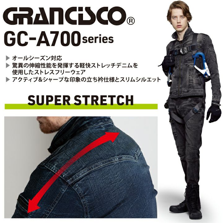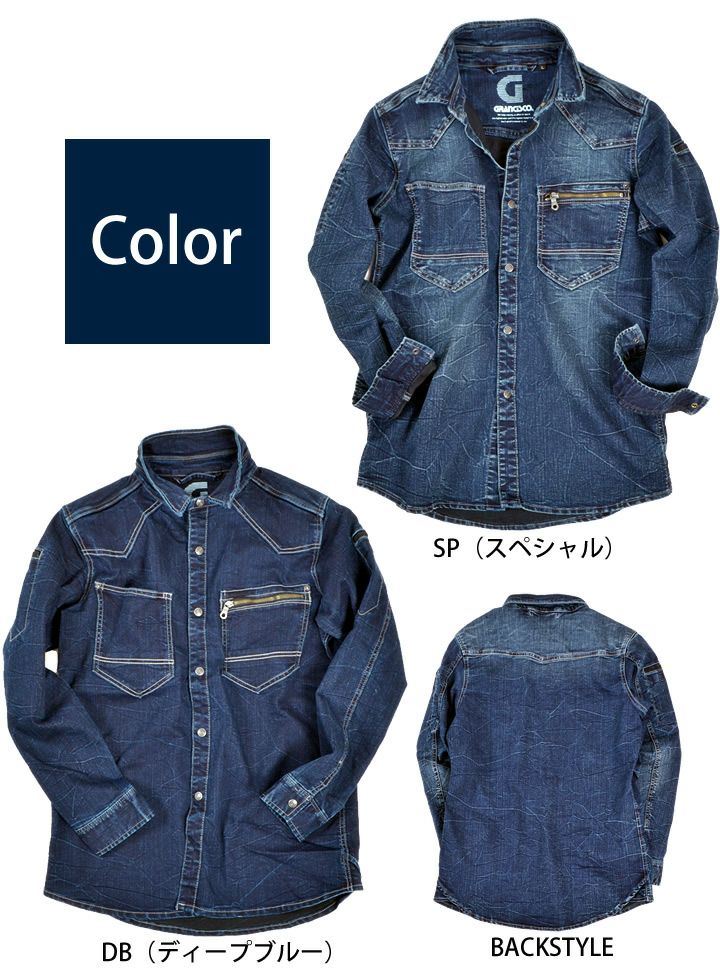 他の画像を見る すっきりスリムシルエット。日常でも使える機能性満載ワークシャツ。 デニムシャツ 作業着 グランシスコ GC-A704 長袖シャツ 本体価格 ¥ 4,499 税込 カートに入れる お気に入りに登録する