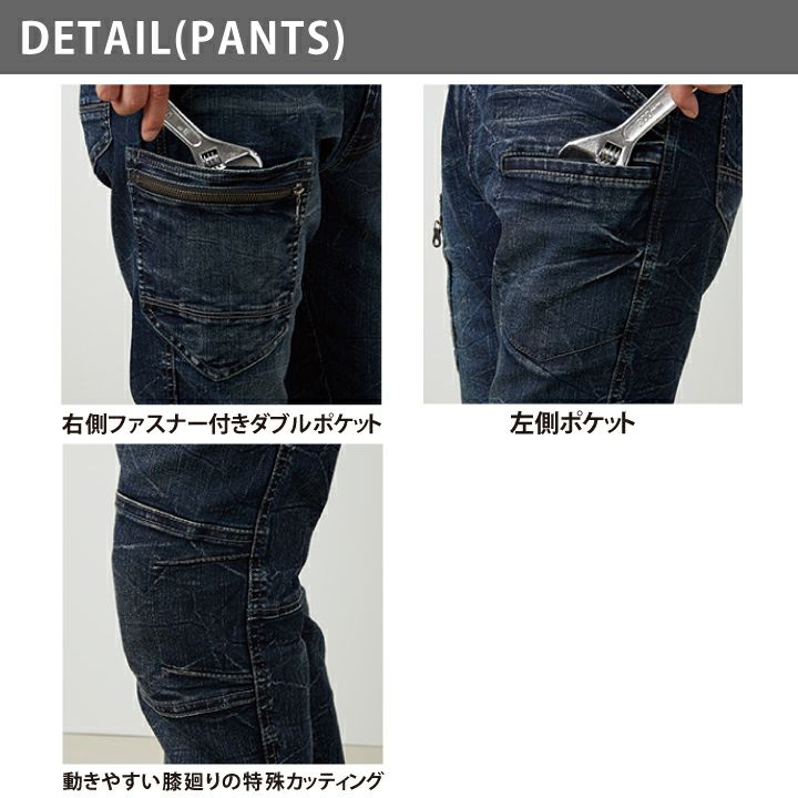 他の画像を見る ヒップまわりはゆったり。膝から裾にかけてぎゅっとテーパード。 デニムカーゴパンツ 作業着 グランシスコ GC-A712【年間】ジーパン ズボン かっこいい 作業服 タカヤ商事【送料無料】 本体価格 ¥ 4,389 税込 カートに入れる お気に入りに登録する