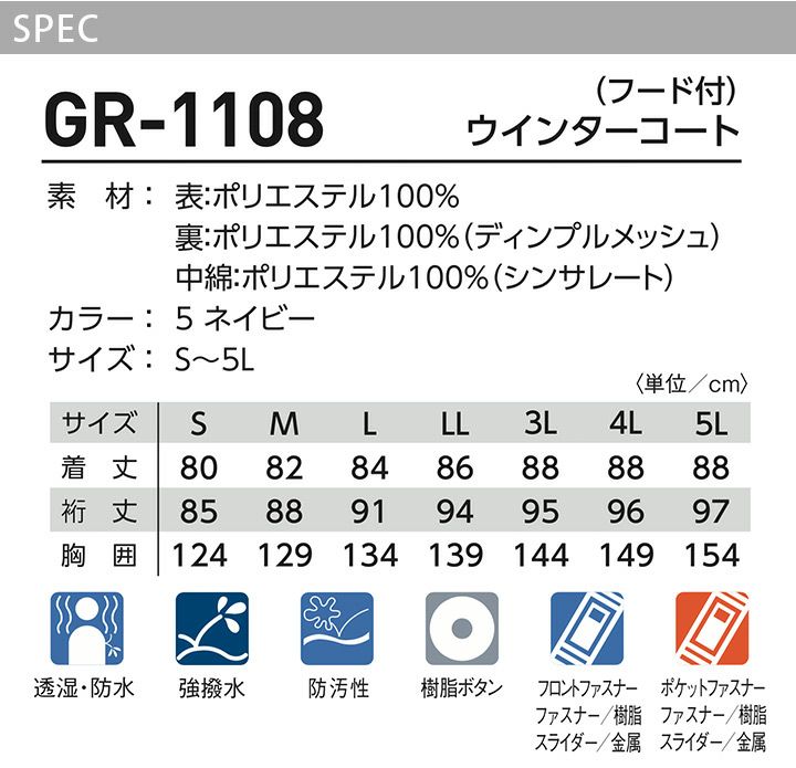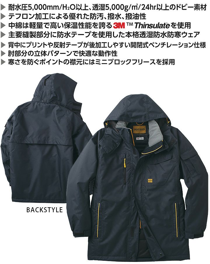 他の画像を見る 主要縫製部分に防水テープを使用した、本格透湿防水防寒シリーズ 防寒コート GR-1108 ウィンターコート フード付き 防汚 強撥水 透湿 防水 防寒着 防寒服 作業着 作業服 アウトドア タカヤ商事 本体価格 ¥ 19,140 税込 カートに入れる お気に入りに登録する