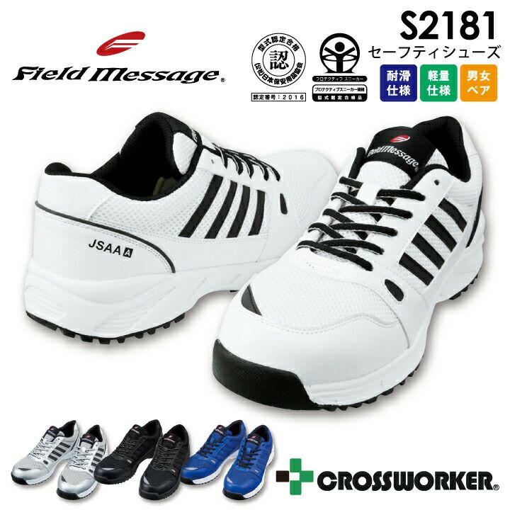 安全靴 セーフティシューズ S2181 JSAA A種認定品 プロスニーカー 衝撃吸収 耐滑 反射材 軽量 男女ペア メンズ レディース フィールドメッセージ 自重堂 作業靴 紐タイプ