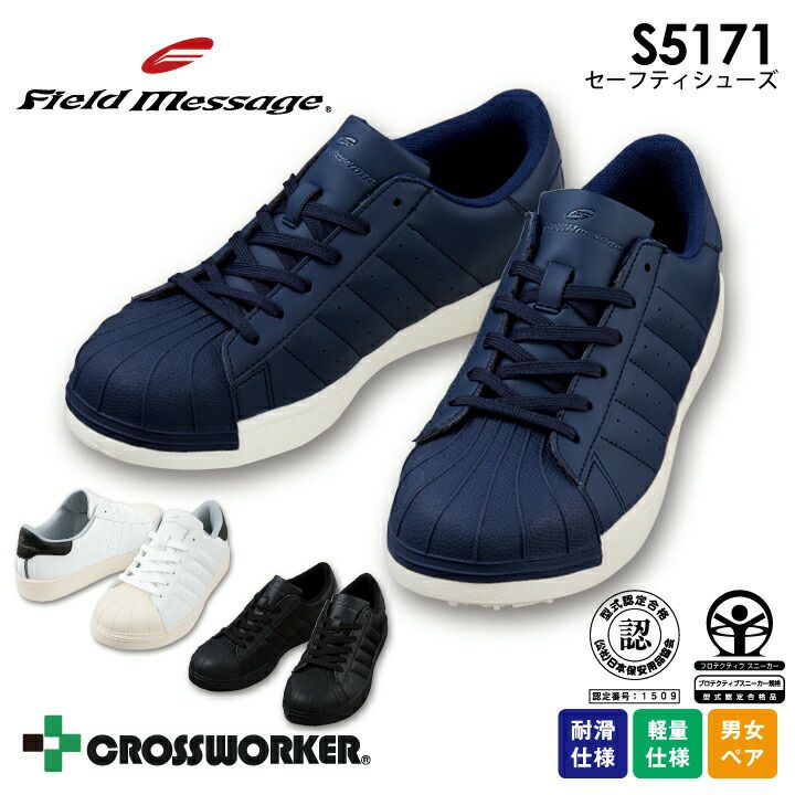 安全靴 セーフティシューズ S5171 JSAA A種認定品 プロスニーカー 衝撃吸収 耐滑 軽量 男女ペア メンズ レディース フィールドメッセージ 自重堂 作業靴 紐タイプ