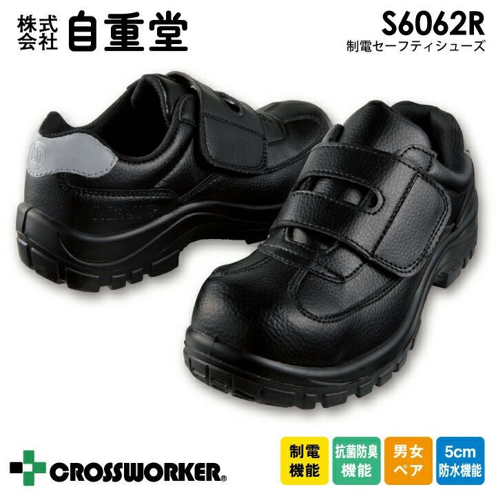 安全靴 セーフティシューズ S6062R 制電 抗菌防臭 男女ペア メンズ レディース 5cm防水 自重堂 作業靴 マジックタイプ スチール芯 電気工事