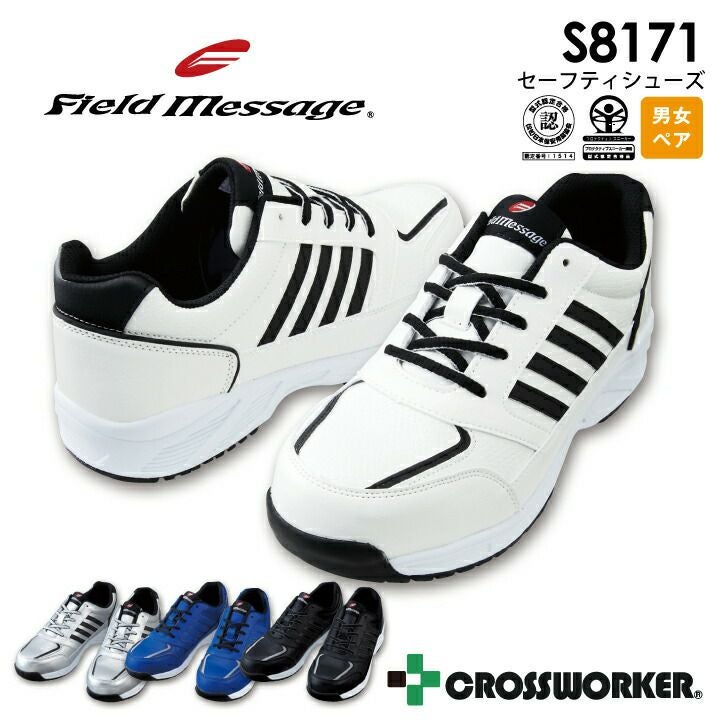 安全靴 セーフティシューズ S8171 JSAA A種認定品 プロスニーカー 耐滑 衝撃吸収 反射材 男女ペア メンズ レディース フィールドメッセージ 自重堂 作業靴 紐タイプ
