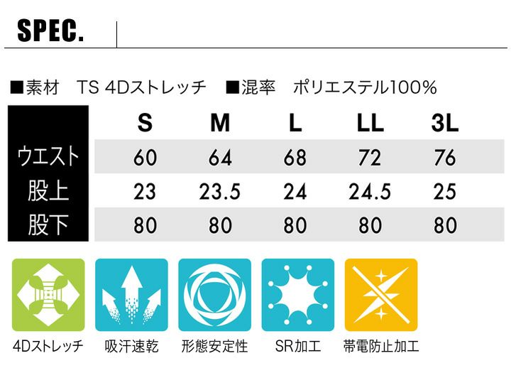 他の画像を見る 保温性と静電機能を両立させ、ストレッチ機能もあるスーパーロングスリーブシャツ 【メール便送料無料※代引不可】TS DESIGN ESロングパンツ 82221 冬用インナーウェア コンプレッション 作業服 作業着 本体価格 ¥ 2,316 税込 詳細を見る お気に入りに登録する