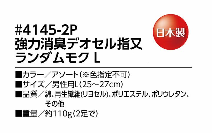 スピードとパワーで勝負! 強力消臭デオセル 靴下 ソックス 指又 メンズ 男性用 4126 デオセル 消臭 福徳産業 日本製 フォーマル 通勤 ワーク 電気 土木 建設 機械 自動車関連 営業 作業服 作業着 【L】 本体価格 ¥ 890 税込 詳細を見る お気に入りに登録する