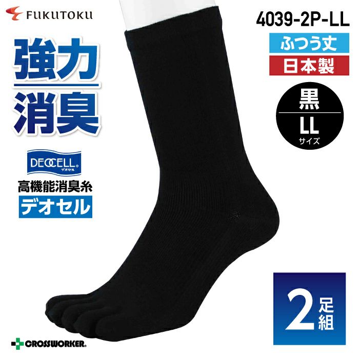 【消臭靴下・作業用】4039-2P-LL デオセル消臭5本指カカト付ソックス黒【福徳産業】