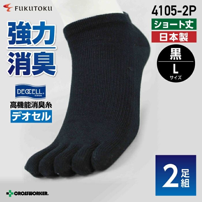 【消臭靴下・作業用】4105-2P デオセル5本指カカト付 ショート丈 黒 L【福徳産業】