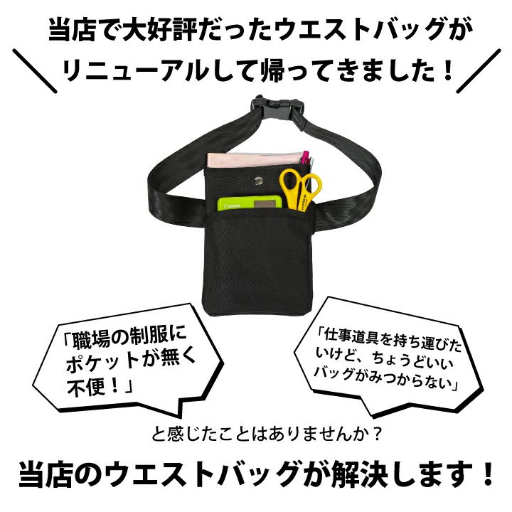 他の画像を見る 当店で好評のウエストバッグがリニューアル! CW-WP1 ウエストバッグ小 仕事用レディース メンズ 軽量 薄い コンパクト 安い ウエストポーチ ベルトバッグ ベルトポーチ ボディバッグ ツールポーチ 黒 接客 品出しサービス業 介護 物流 看護 イベント 本体価格 ¥ 1,980 税込 詳細を見る お気に入りに登録する