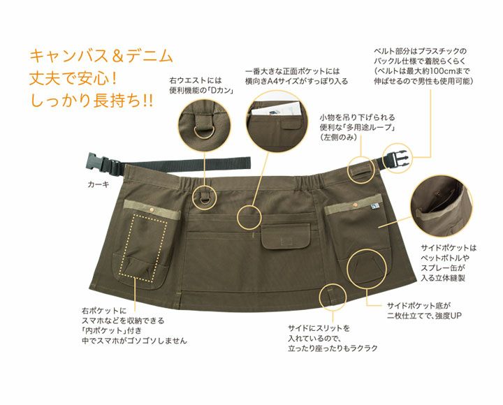 他の画像を見る キャンバス&デニム。丈夫で安心!しっかり長持ち!! のらスタイル マルチポケットエプロン NS-947 ポケット付き 大容量 小物 農業 農家 園芸 ガーデニング 畑 綿 ユニワールド 作業服 作業着 本体価格 ¥ 1,650 税込 在庫切れ カートに入れる お気に入りに登録する