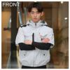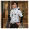 ・視認性、音、ヘルメットに対応するメッシュ構造フードはファスナー衿に収納可能