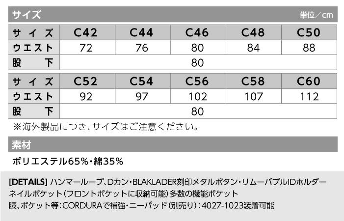 他の画像を見る 【返品交換不可】ベーシックスタイルで多数の機能ポケット付きパンツ 膝・ポケット部はコーデュラで補強あり 別売ニーパット装着可能 ブラックラダー コーデュラパンツ カーゴパンツ 8211-1860 ビッグボーン商事 BLAKLADER ズボン 作業服 作業着【秋冬 年間】送料無料 本体価格 ¥ 8,690 税込 詳細を見る お気に入りに登録する