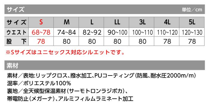 他の画像を見る 【耐水圧2000mm 透湿度4000g/m2/24h】 自重堂 防水防寒パンツ 48341 ズボン 防寒着 防寒服 秋冬 作業着 作業服 本体価格 ¥ 7,590 税込 カートに入れる お気に入りに登録する