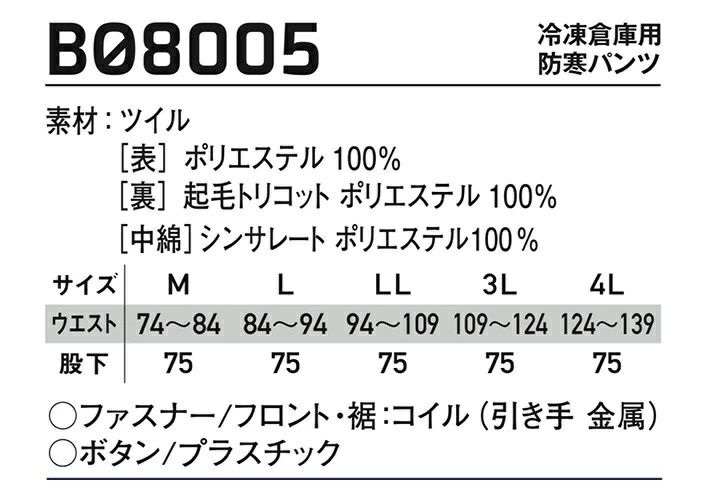 他の画像を見る 冬の南極に匹敵する-60℃まで対応する冷凍倉庫専用アイテム! サンエス 冷凍倉庫用防寒パンツ BO8005 防寒服 防寒着 作業服 作業着 SUN-S 冷凍庫 冷蔵庫 フード付き 冬 バイク 暖かい あったかい -60℃対応 南極 本体価格 ¥ 18,700 税込 カートに入れる お気に入りに登録する