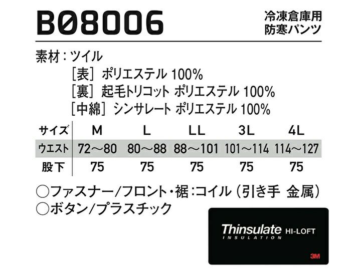 他の画像を見る 徹底した防寒機能が身体の熱を守り、冷凍倉庫内での業務・安全をサポート。 冷凍倉庫用防寒パンツ BO8006 サンエス 防寒服 防寒着 作業服 作業着 SUN-S 冷蔵庫 冷凍庫 暖かい あったかい -40℃対応 冬 バイク 本体価格 ¥ 14,080 税込 カートに入れる お気に入りに登録する