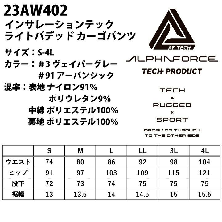 他の画像を見る 高耐久のナイロンストレッチ素材に保温性をプラスした中綿入り防寒ウェア 23AW新商品 インサレーションテック ライトパデッド カーゴパンツ 防寒着 秋冬 ストレッチ 軽量 高耐久 ウォッシャブル アルファフォース ALPHAFORCE アルトコーポレーション メンズ レディース 男女兼用 作業服 作業着 防寒 本体価格 ¥ 6,780 税込 在庫切れ カートに入れる お気に入りに登録する