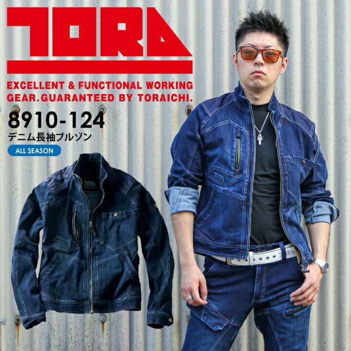 デニムジャケット 長袖 8910-124 寅壱 年間 オールシーズン メンズ ブルゾン ジャンパー ストレッチ コーデュラ かっこいい 作業服 作業着 ジーンズ Gジャン【S-3L】
