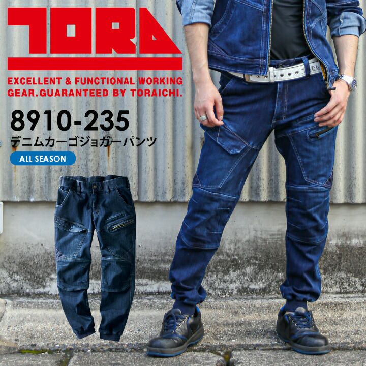 デニムカーゴジョガーパンツ 8910-235 寅壱 年間 オールシーズン メンズ ズボン ストレッチ 裾口リブ かっこいい 作業服 作業着 ジーンズ【S-3L】