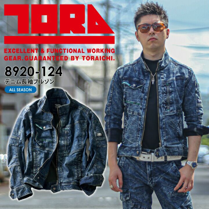 デニムジャケット 長袖 8920-124 寅壱 年間 オールシーズン メンズ ブルゾン ジャンパー ストレッチ かっこいい 作業服 作業着 ジーンズ Gジャン【S-3L】