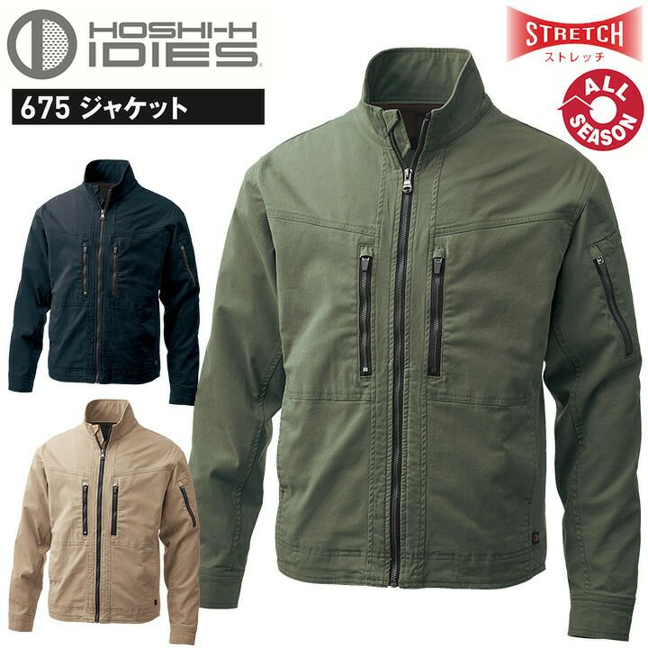長袖ジャケット HOSHI 675 年間 ストレッチ スリムシルエット ブルゾン ジャンバー ホシ服装 作業服 作業着 ユニフォーム フルハーネス対応ポケット 綿