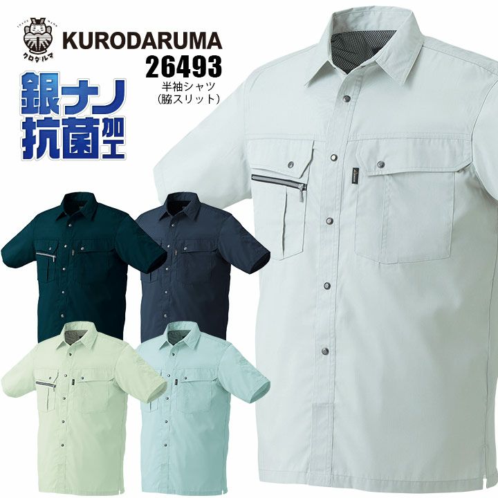 クロダルマ 半袖シャツ 脇スリット 26493 銀ナノ抗菌加工 消臭【春夏】作業着 作業服