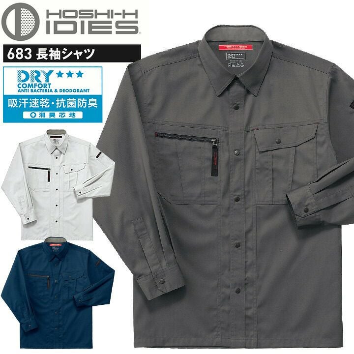 長袖シャツ HOSHI 683 春夏 吸汗速乾 抗菌防臭 帯電防止 ホシ服装 作業服 作業着 ユニフォーム