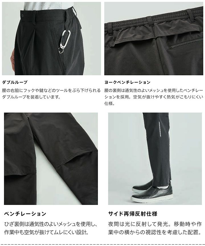 他の画像を見る ジャケットと合わせてスーツスタイルが完成する、スタイリッシュな高機能パンツ。 どこでもパンツ キャリーン CAM188 スラックス スーツ メンズ 速乾 撥水 ストレッチ 男性用 作業服 作業着 カジュアル フォーマル ユニフォーム 制服 CAM-188 CAREAN スーツ型作業服 ワーキングスーツ 配達員 清掃員 自転車 蒸れない 蒸れにくい 本体価格 ¥ 9,205 税込 カートに入れる お気に入りに登録する