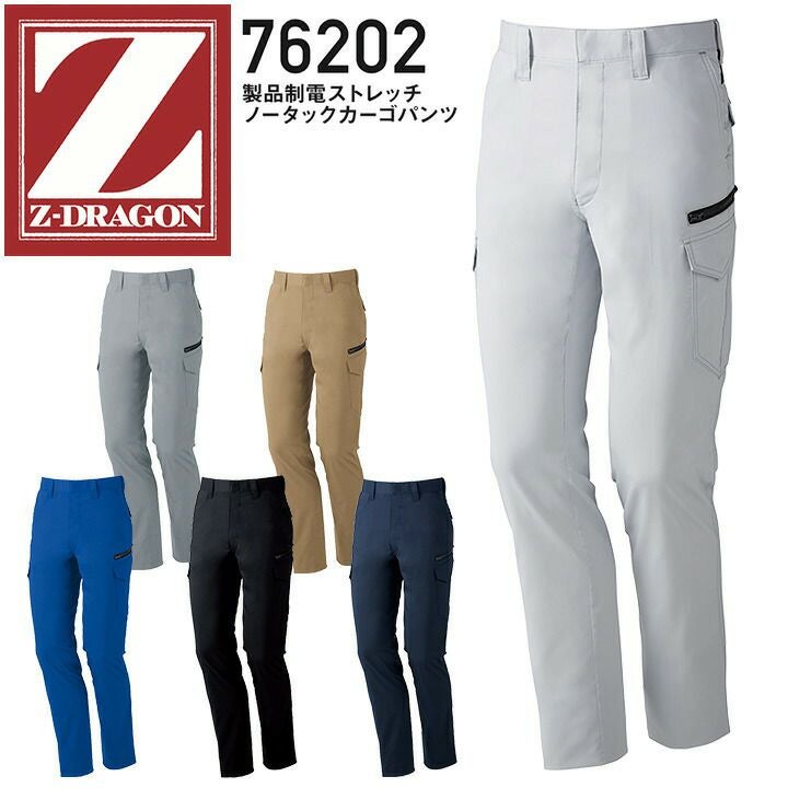ノータックカーゴパンツ 製品制電 Z-DRAGON 76202【春夏】男性用 メンズ ズボン 帯電防止 反射 ストレッチ 消臭 抗菌 自重堂 電気工事 作業服 作業着【70-106】