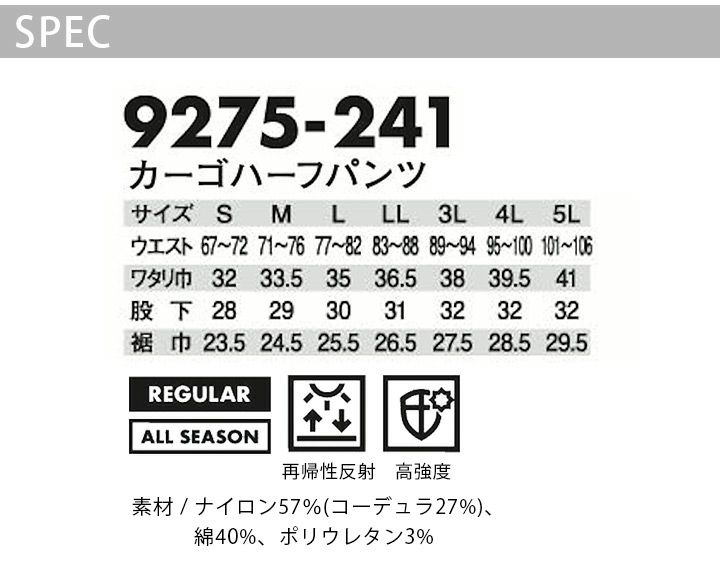 他の画像を見る 夏の現場にピッタリな、カーゴハーフパンツが登場!!丈夫なニット素材を使用し、シンプルで着回しが効くデザインに。 寅壱 カーゴハーフパンツ 9275-241 オールシーズン ショートパンツ 半ズボン コーデュラ 高強度 再帰性反射 メンズ 作業服 作業着 とらいち【M-3L】 本体価格 ¥ 6,500 税込 在庫切れ カートに入れる お気に入りに登録する