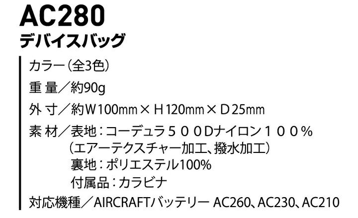 他の画像を見る 高強度耐久性のあるコーデュラ500Dクロス使用のデバイスバッグ バートル 空調ファン付きウェア デバイスバッグ エアークラフト AC280 バッテリーケース 収納 2021年モデル 作業服 作業着 熱中症対策 BURTLE 本体価格 ¥ 1,989 税込 在庫切れ カートに入れる お気に入りに登録する