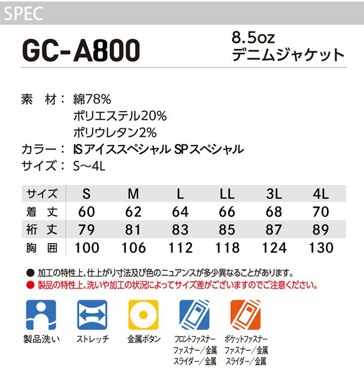 他の画像を見る 作業服の領域を超える。進化し続けるワークウェア。 デニムジャケット 8.5oz グランシスコ GC-A800 GCA800 長袖ブルゾン ジャンパー ストレッチ ユニセックス メンズ レディース 作業着 作業服 タカヤ商事 かっこいい おしゃれ【S-3L】 本体価格 ¥ 5,489 税込 カートに入れる お気に入りに登録する