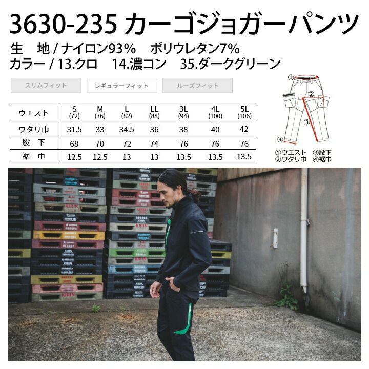 他の画像を見る 摩擦に強く軽量かつ動き易い縦横ストレッチのコーデュラ?を使用した本格的カーゴジョガーパンツ 寅壱 カーゴジョガーパンツ 3630-235 年間 オールシーズン ジョガー カーゴ パンツ ストレッチ ナイロン コーデュラ かっこいい 作業服 作業着 【S-3L】 本体価格 ¥ 7,000 税込 カートに入れる お気に入りに登録する
