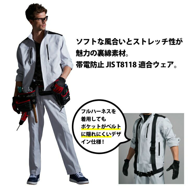 他の画像を見る フルハーネスを着用してもポケットがベルトに隠れにくい仕様。 長袖ジャンパー 製品制電 ストレッチ Z-DRAGON 76000【春夏】ジャケット ブルゾン 男女兼用 メンズ レディース JIS T8118 フルハーネス仕様 自重堂 作業着 作業服 電気工事 ジードラゴン 本体価格 ¥ 3,630 税込 カートに入れる お気に入りに登録する