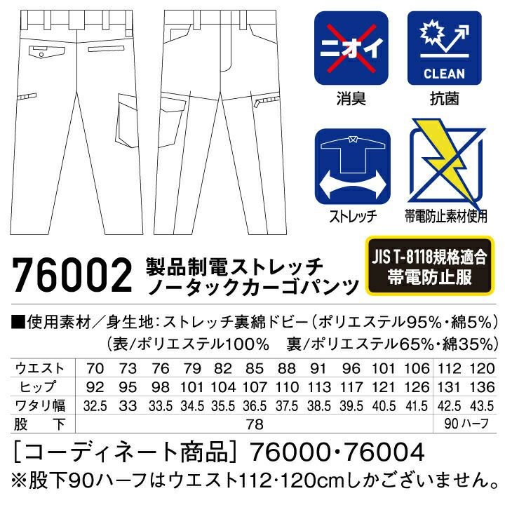 他の画像を見る ソフトな風合いとストレッチ性が魅力の裏面素材 ノータックカーゴパンツ 製品制電 ストレッチ Z-DRAGON 76002【春夏】ズボン フルハーネス仕様 JIS T8118 自重堂 作業着 作業服 電気工事 ジードラゴン 本体価格 ¥ 2,890 税込 カートに入れる お気に入りに登録する