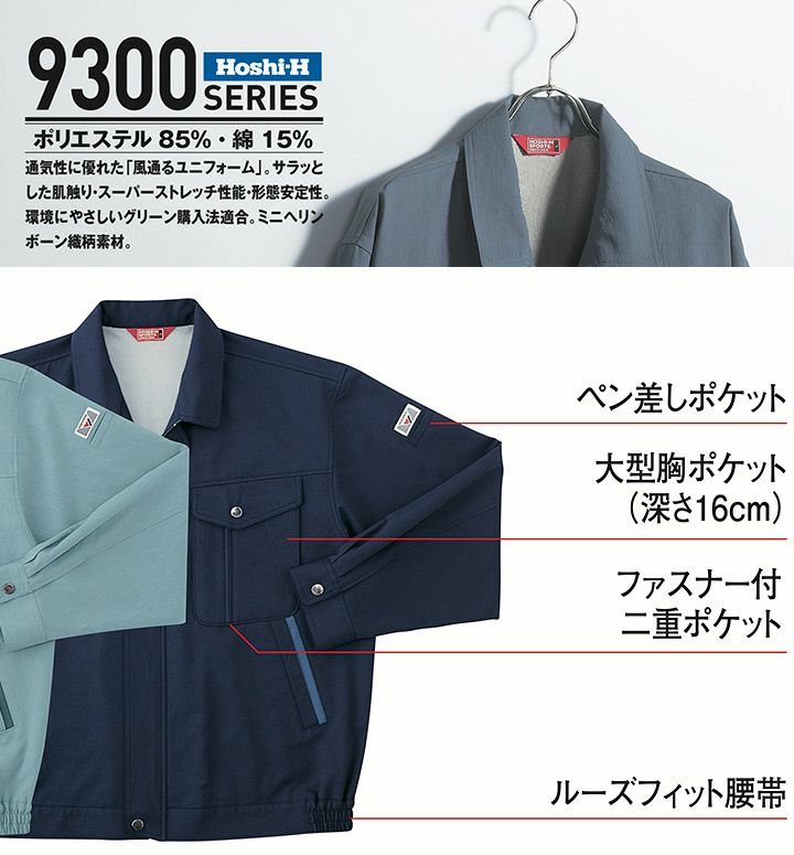 他の画像を見る 通気性に優れた「風通るユニフォーム」。サラッとした肌触り・スーパーストレッチ性能・形態安定性。 長袖ブルゾン HOSHI 9310 高通気性 ホシ服装 ジャケット ストレッチ 形態安定性 作業服 作業着 ユニフォーム 帯電防止素材 スタンダード バイカラー 本体価格 ¥ 5,700 税込 カートに入れる お気に入りに登録する