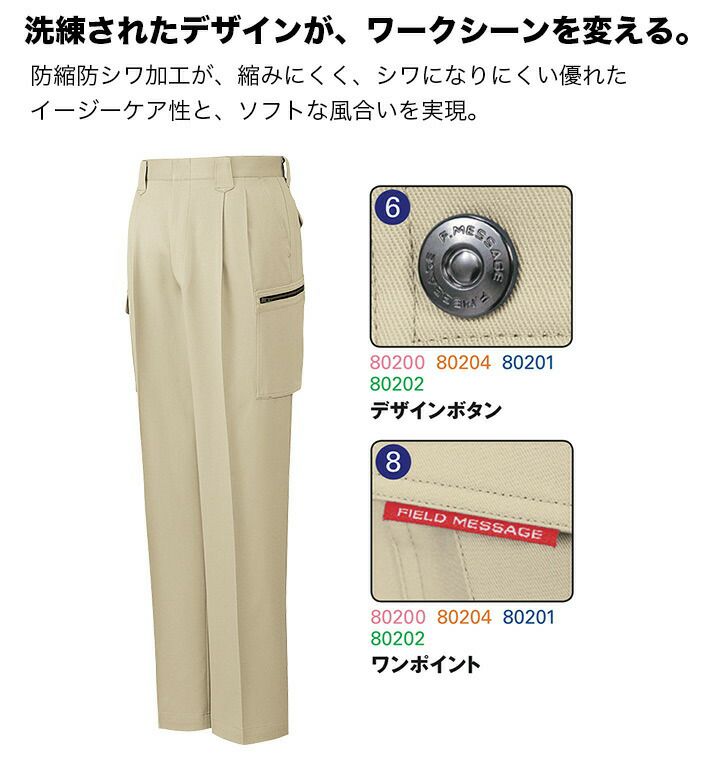 他の画像を見る 洗練されたデザインが、ワークシーンを変える。防縮防シワ加工が、縮みにくく、シワになりにくい優れたイージーケア性と、ソフトな風合いを実現。 ストレッチツータックパンツ 自重堂 80201 男性用 メンズ 秋冬 年間 通年 オールシーズン 綿100% 防縮防シワ加工 作業服 作業着 ズボン スラックス定番【70-88】 本体価格 ¥ 3,300 税込 カートに入れる お気に入りに登録する
