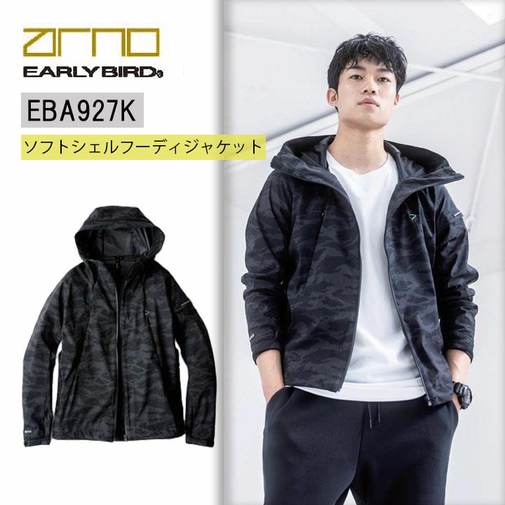 bigborn ビッグボーン EBA927K ソフトシェルフーディージャケット 男女兼用 メンズ レディース フード ハイネック ストレッチ 防風 撥水 軽量 保温 細身 ペア ユニフォーム タイガーブラック