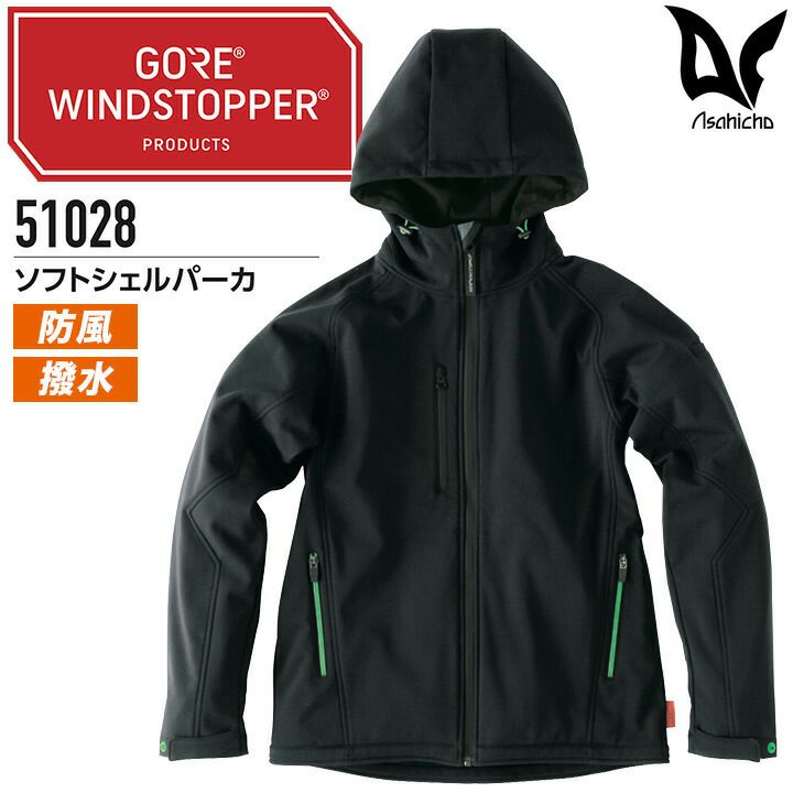 ソフトシェルパーカ 旭蝶 51028 メンズ ジャンパー ブルゾン 防風 反射 撥水 ストレッチ アウトドア 作業着 作業服 ゴアウインドストッパー 旭蝶【S-LL】