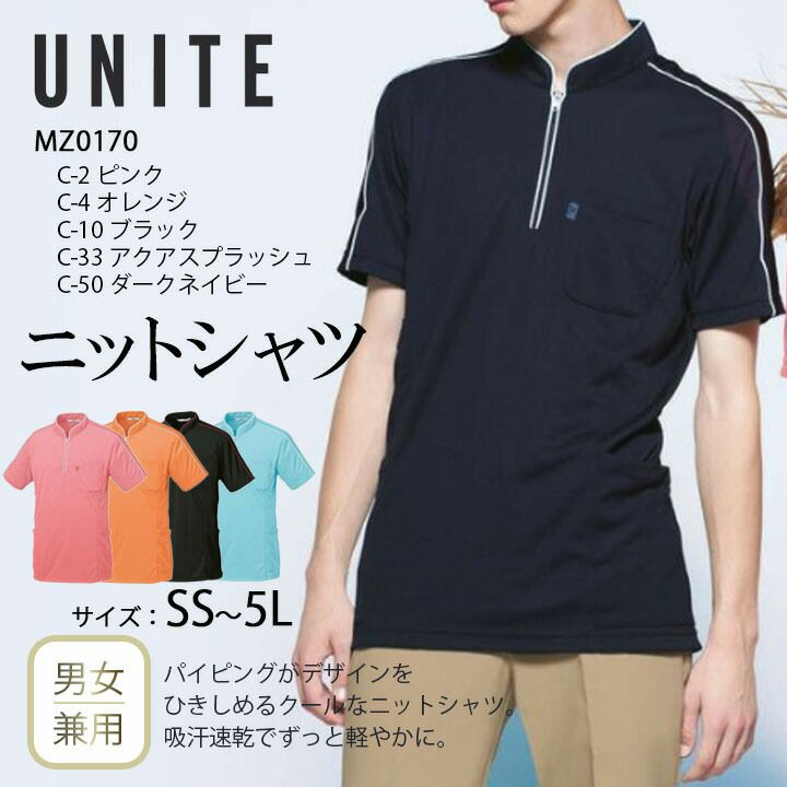 MZ0170 ニットシャツ 半袖 男女兼用 メンズ レディース ユニセックス対応 スクラブ ストレッチ 吸汗速乾 医療 白衣 物流 輸送 運送 清掃 スタッフ 制服 メンテナンス 作業着 作業服 おしゃれ バイカラー ツートンカラー パイピング